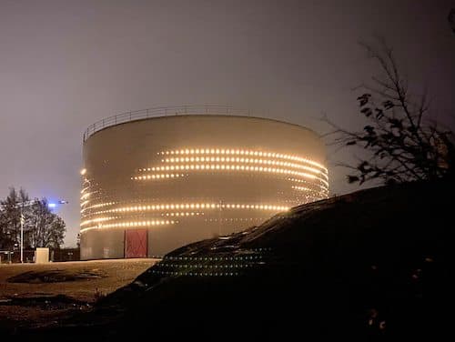 The light art installation of Oil Tank 468 was designed by lighting artist Tapio Rosenius from Lighting Design Collective and was completed in 2012, World Design Capital Helsinki year, to delight all Helsinkians and visitors to the city. The work has received praise and awards in international competitions and publications. It is also possible to rent the oil tank from the City of Helsinki for your own event.