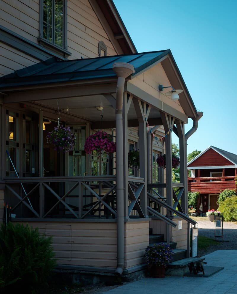 The café also has a large terrace and additional space has been created outside the building under a covered area. Under the trees are table and chair groups where you can enjoy your own food or café delicacies. The café's famous giant cardamom pastries smell delicious all the way to the ferry dock. In addition to pastries, coffee and drinks, the café sells other delicacies, filled breads, smoothies and ice cream. Lunch is available during the summer season from Tuesday to Sunday.