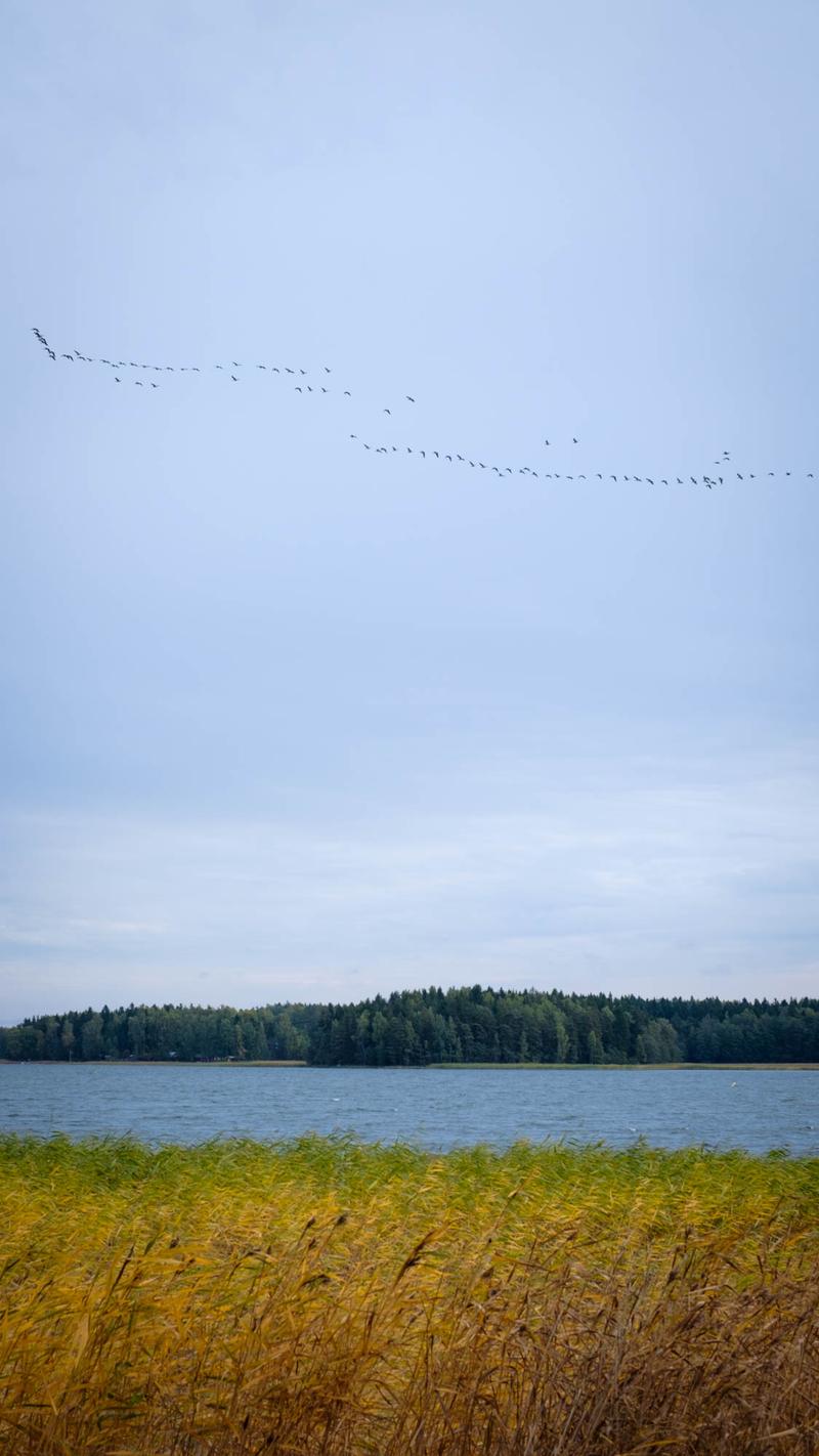 Our autumn outing started peacefully admiring the horses. We walked to the other end of the trail, where we planned to eat our packed lunch by the familiar beach. However, the plans changed when we noticed the symmetrical reed piles on the beach. A quick Google search produced results: Beaver lodges! The next sentence made us take a couple of steps back “Beavers defend their lodges aggressively”. So the lunch spot was quickly changed to a rocky beach a short distance away, where another surprise awaited: a grass snake enjoying the autumn sun in a rock crevice. Finally, we ate our lunch in the boat admiring migratory birds flying by.