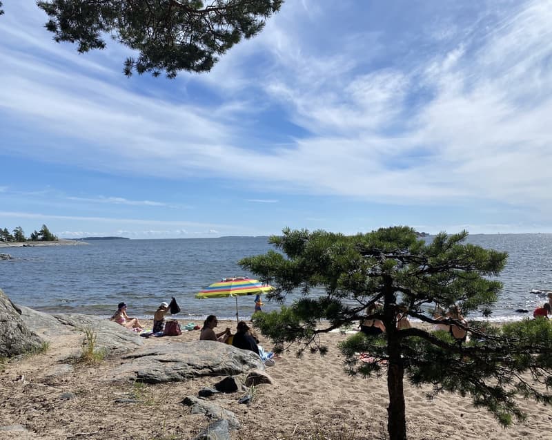 From the Uutela outdoor recreation area, a small forest path leads to a wonderful natural swimming beach with beautiful archipelago views. The beach across from Skataniemi is partly rocky and partly covered with soft sand, a small beach that few know about. Under the water there are some rocks, like typical archipelago beaches, so water shoes come in handy, especially for young swimmers. On warm summer days, the atmosphere is like being in the outer archipelago, and the views are unique. This beach is not accessible without assistance. During berry season, picnic treats can be found along the path. You may also see snakes and lizards in the area.