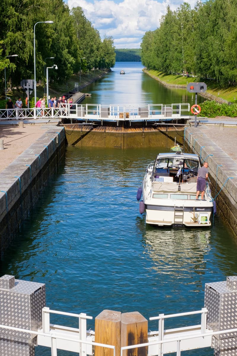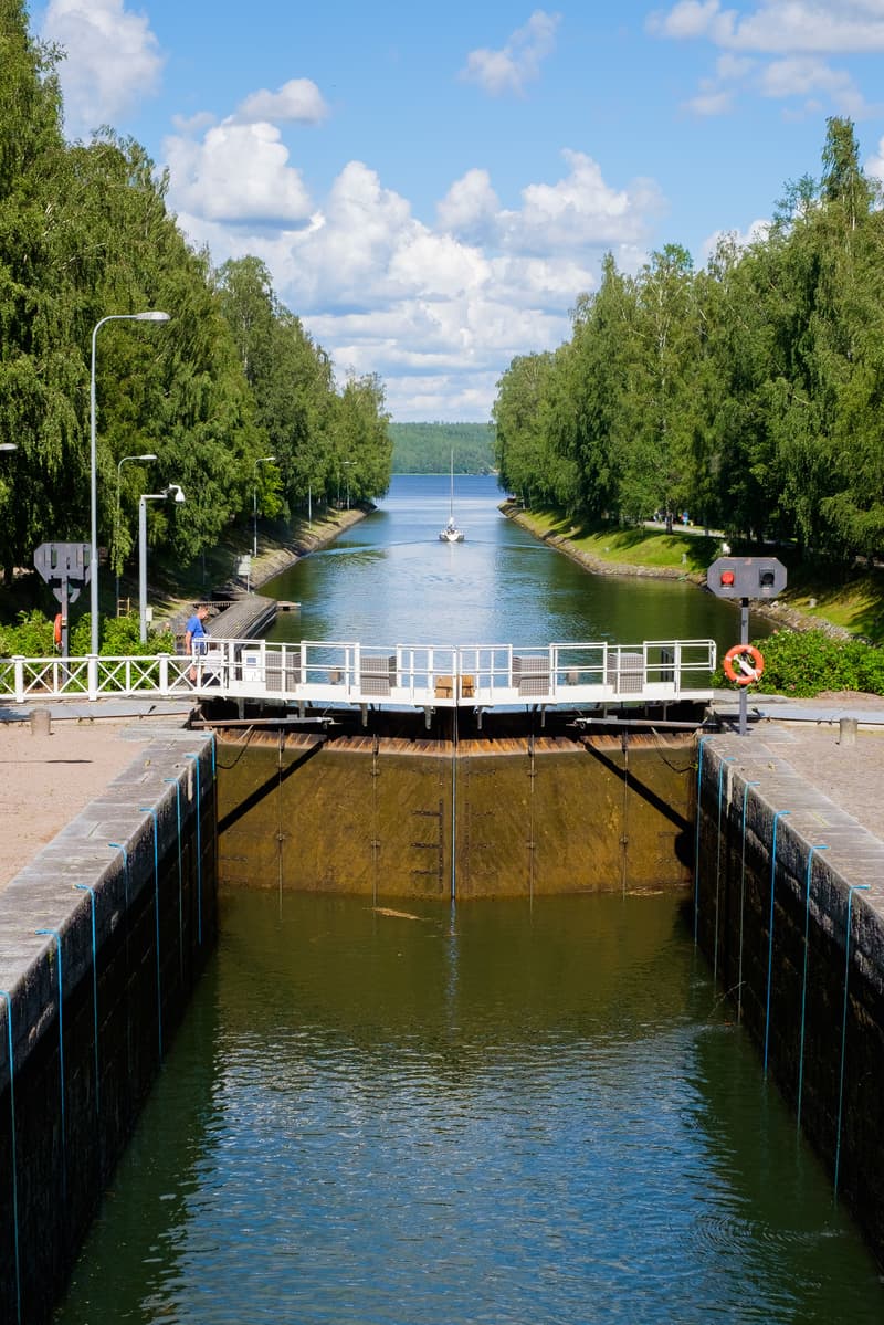 We spent a long time marveling at the Vääksy canal. Boats entered the canal frequently on this sunny day, and it was interesting to watch the canal in action. The lifting bridge was also thrilling for the children. You can walk along the canal and also see Lake Päijänne and the visitor boat harbor where you can watch boats.