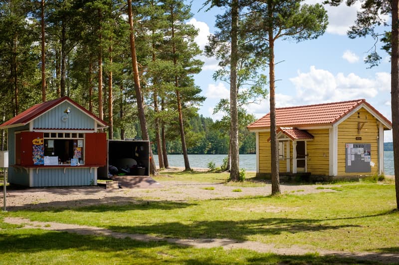 Our first stop was Kalmarin swimming beach, also known as Vääksy's Riviera. The beach hadn't been praised without reason by the person who recommended it to Little Finland, because it was amazing! The water in Lake Vesijärvi was clear and warm, and according to the information board, it was still excellent quality swimming water. The beach extends for a long distance and remains shallow with soft sand. On a windy day, there weren't many other people on the beach, but you could buy treats from the kiosk and rent things like SUP boards. The beach also had a nice playground! The area offers several sports activities and rentable equipment. The swimming experience at Kalmarin beach is excellent!