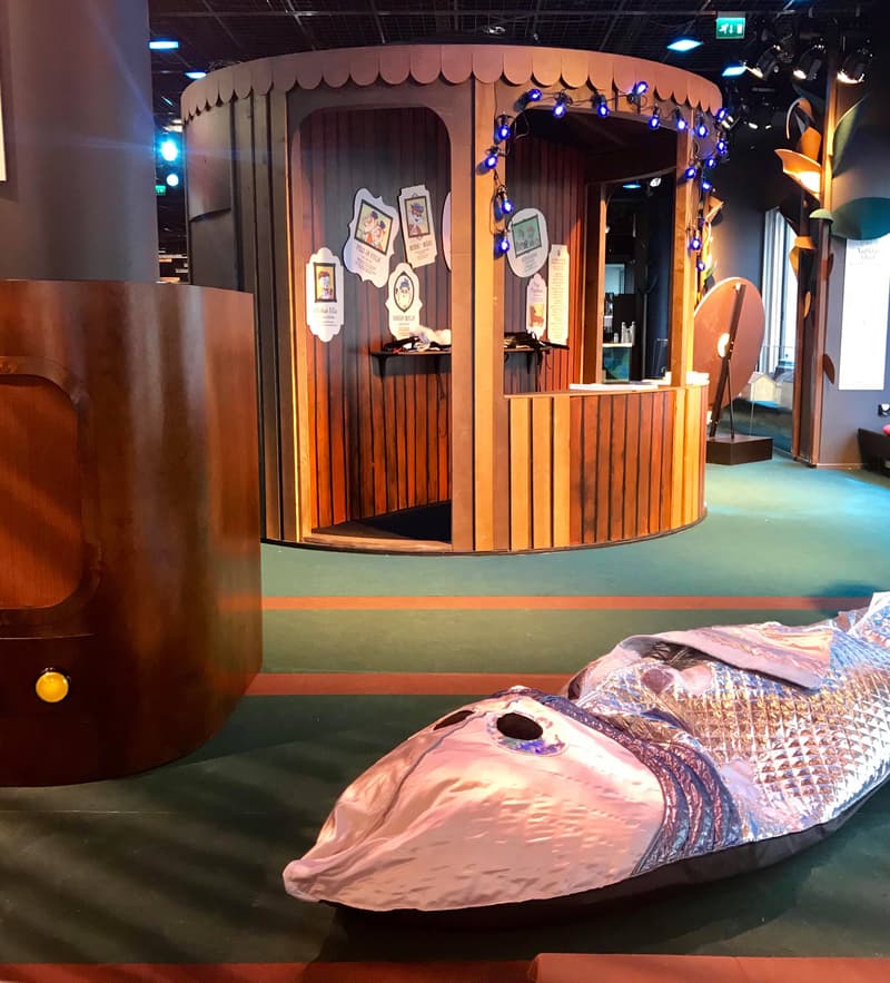 On soft cushions, even younger museum visitors will surely enjoy marveling at shiny sprats, as long as you don't happen to visit at the same time as a larger group of children. On the windowsill, you can relax and read Pekka Töpöhäntä books.