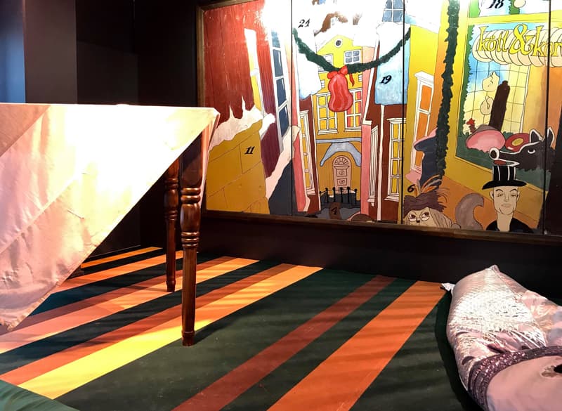 Dare you peek into Monni's coal cellar, read stories from a high chair, hiss like a cat, and chase a giant ball of yarn? You can lounge on top of giant sprats and listen to Pekka Töpöhäntä's adventures from a large radio. For children, the exhibition unfolds in a new way: you can crawl into Monni's cellar and marvel at a giant tail, giant balls of yarn invite play, and on soft cushions among sprats and fish bones it's fun to roll around.