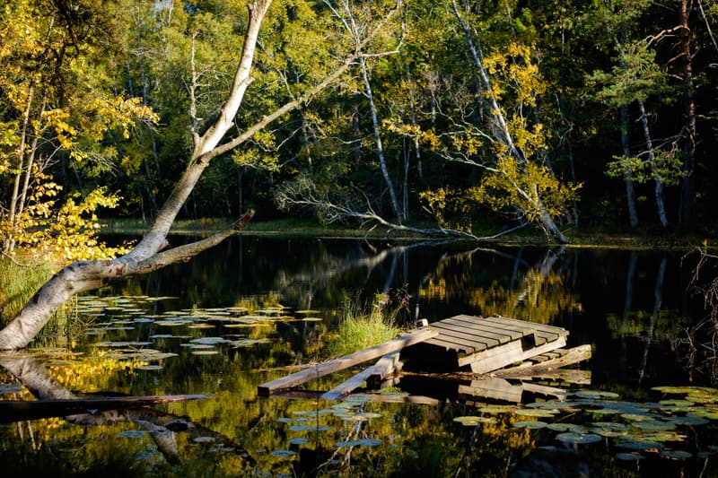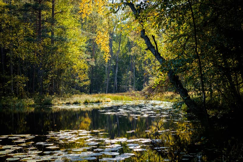 Through the dense deciduous forest surrounding the water lily-covered lake, the clear autumn sun shone through, illuminating the area with golden light that even made the moody four-year-old pause for a moment. The dark, humus-rich water creates a wonderful contrast to the surrounding deciduous trees. The lake is not without reason called one of Helsinki’s most beautiful secrets.