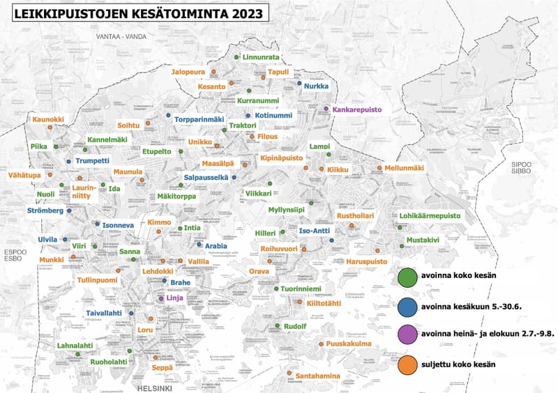 The 81st summer of playpark dining begins on the first day of summer holidays for schoolchildren. Helsinki offers free lunch to children and young people under 16 years old in open playparks on weekdays at 12 o'clock from 5.6.-4.8.2023.