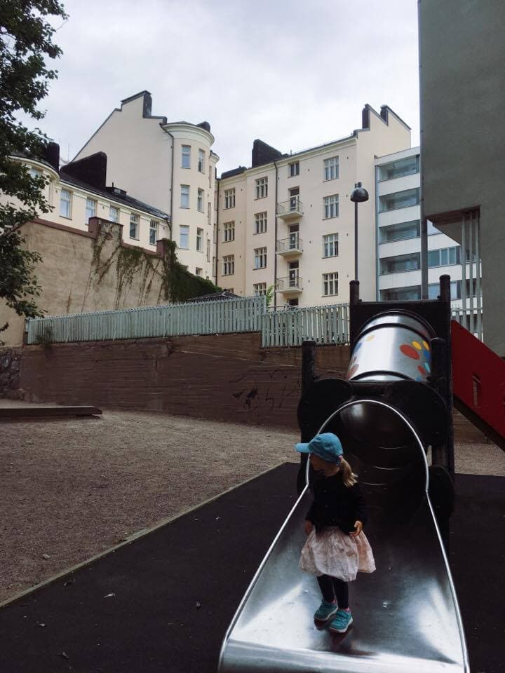 The Porthani Park playground near Kallio Library is a large and spacious park on the corner of two streets. The park is a good playground for older children, but has few suitable equipment for smaller children. Here you can wonder at the hustle and bustle of the city and hear the sounds of nearby fire engine sirens.