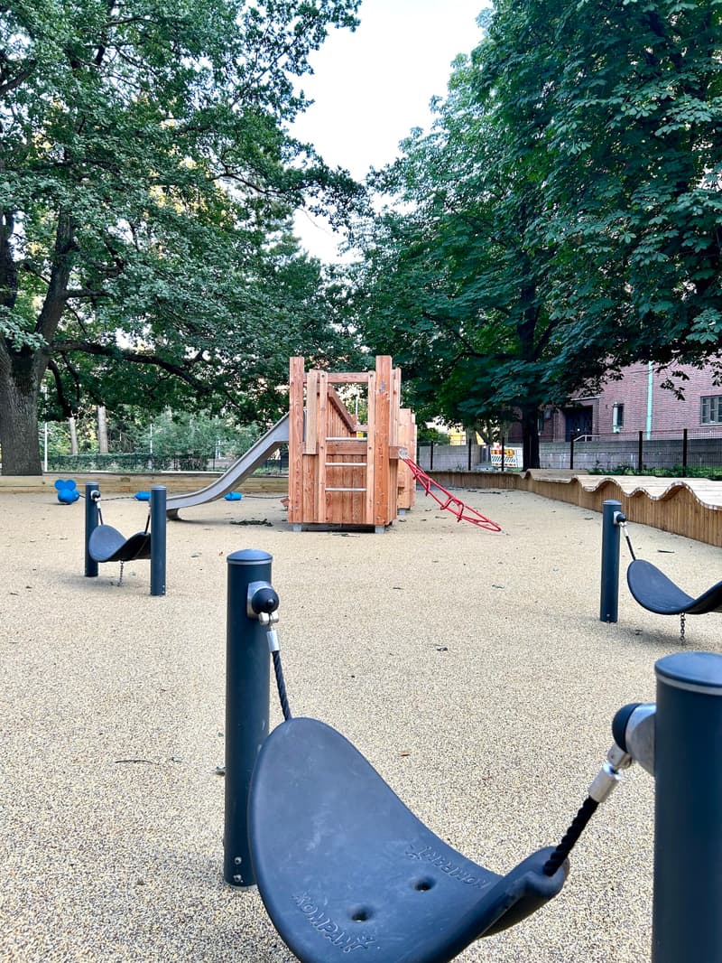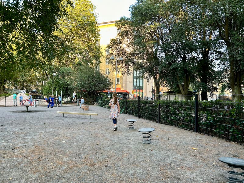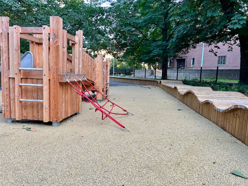 Seppä Playground's yard area is large and fenced. There's so much space that there could have been room for some truly wow-factor element, but that's missing now. Overall, however, it's quite nice and functional, and the playground is a much-needed addition to the central area.