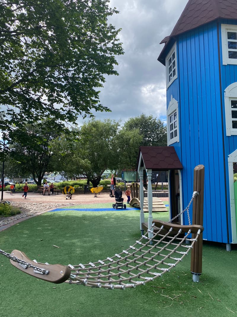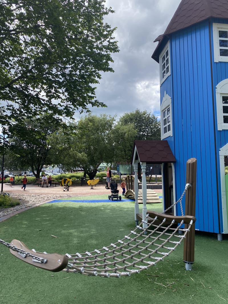 Moomin-themed playgrounds can be found at least at Katarina Sea Park in Kotka, in Porvoo city center, in Inkoo city center, and at Keskinen Village Shop in Turku.
