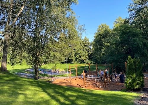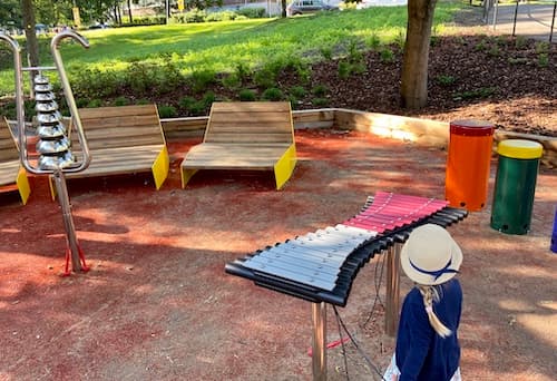 at the edge of Squirrel Playground from the back of the playground.