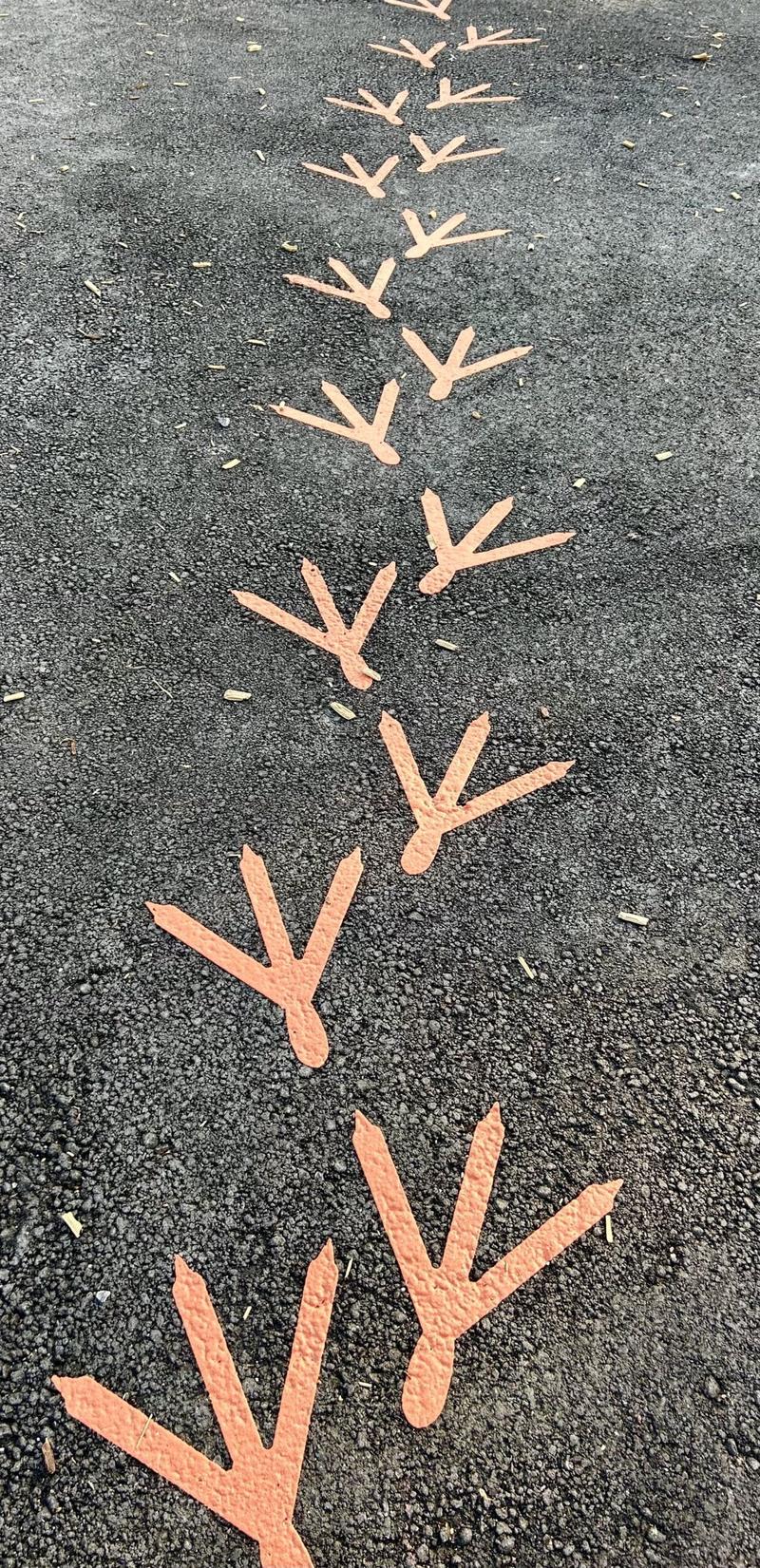 following chicken footprints.