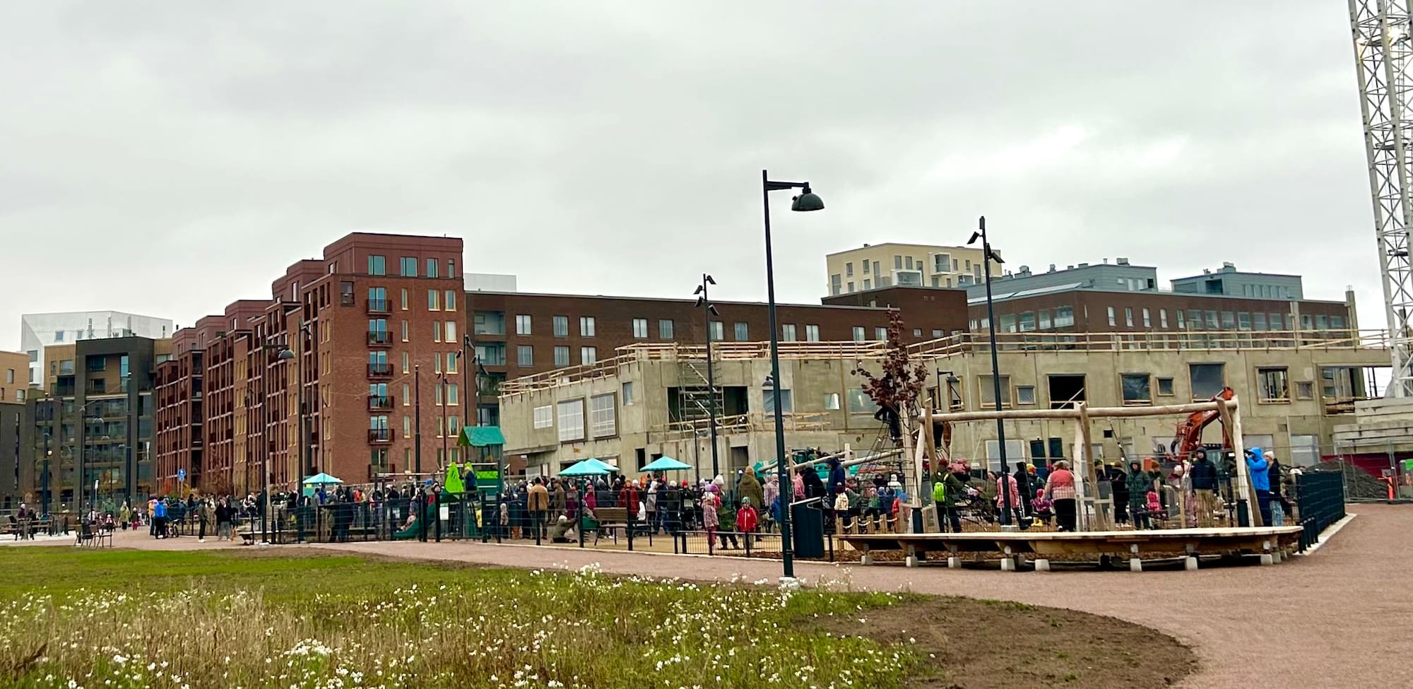 Jutun kansikuva Kruunuvuorenrannasta, Haakoninlahdenpuiston leikkipaikan avajaisista, joita vietettiin sunnuntaina 2.11.2025.